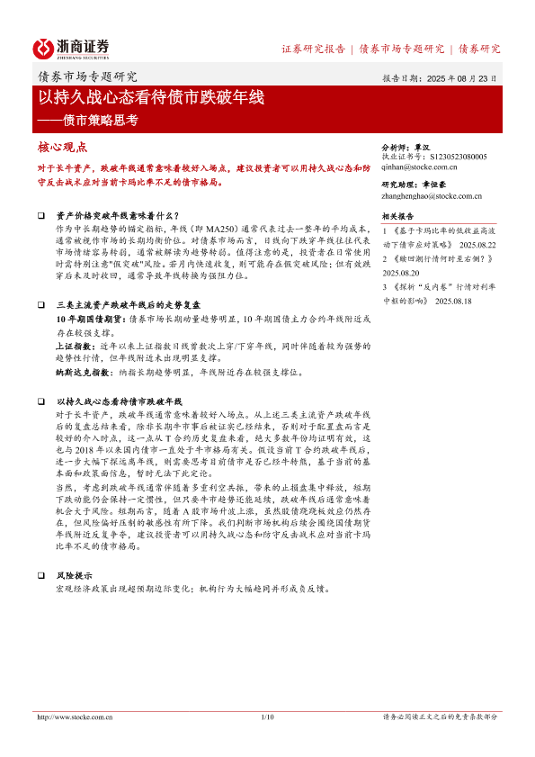 【浙商证券】【202508】以持久战心态看待债市跌破年线——债市策略思考-10页