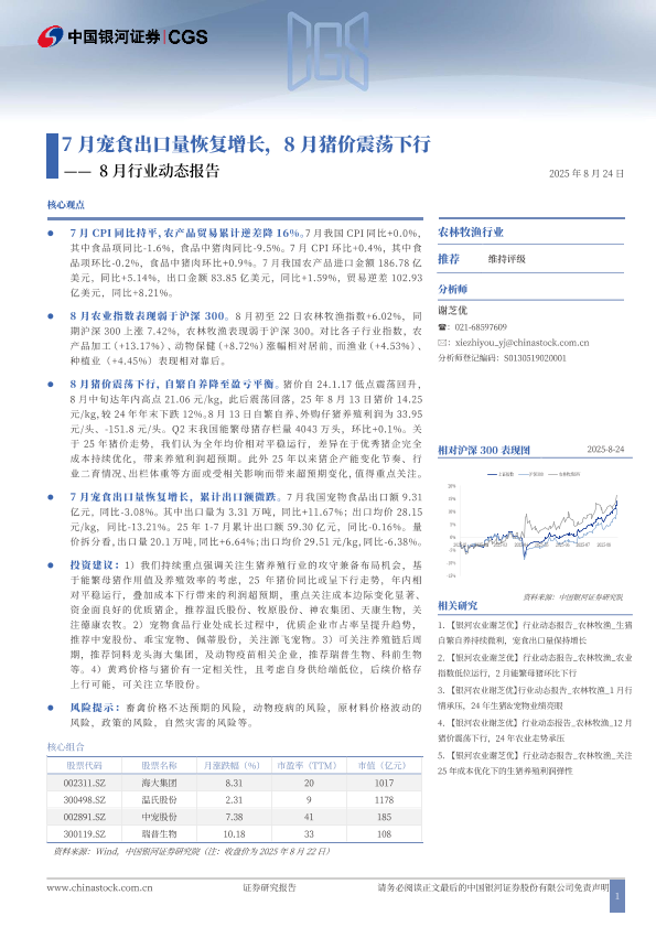 【银河证券】【202508】7月宠食出口量恢复增长,8月猪价震荡下行-21页