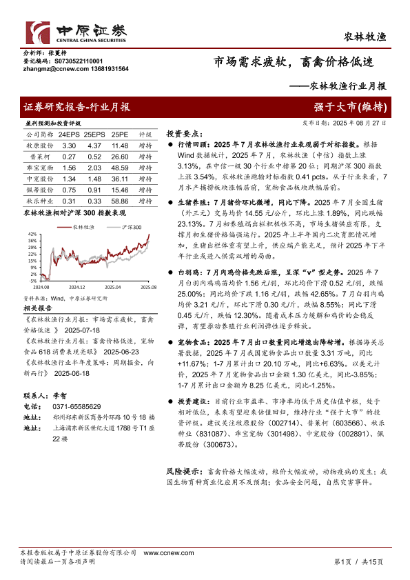 【中原证券】【202508】农林牧渔行业月报:市场需求疲软,畜禽价格低迷-15页