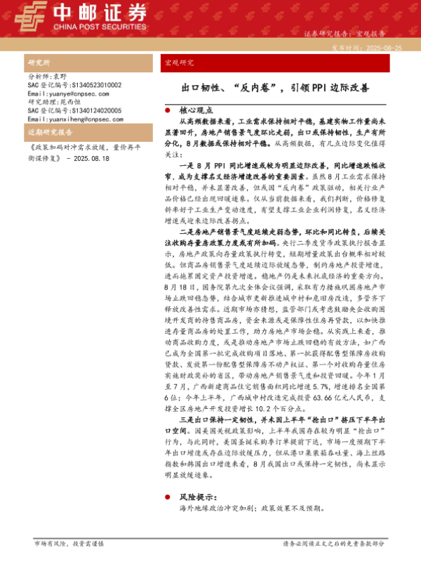 【中邮证券】【202508】出口韧性、“反内卷”,引领PPI边际改善-31页