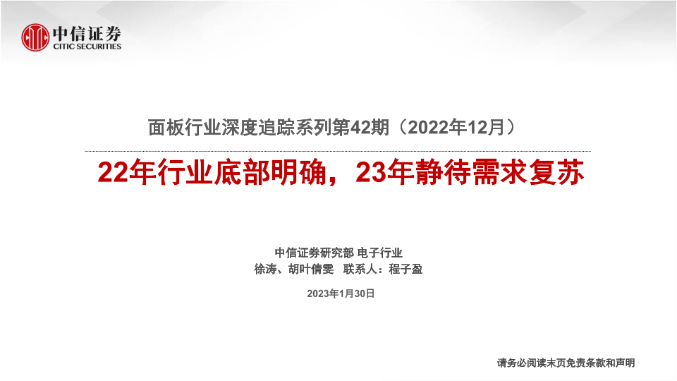 【中信证券】【20230130】面板行业深度追踪系列第42期(2022年12月):22年行业底部明确,23年静待需求复苏-22页