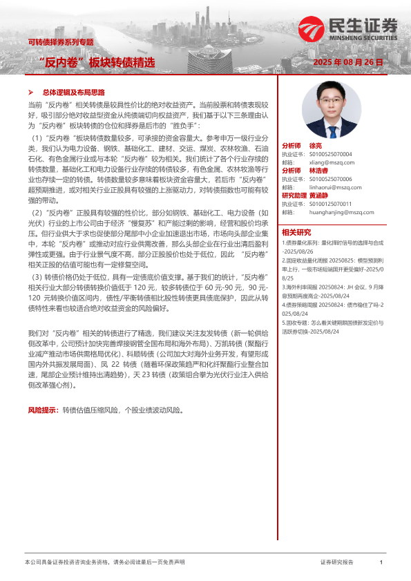 【民生证券】【202508】可转债择券系列专题:“反内卷”板块转债精选-12页