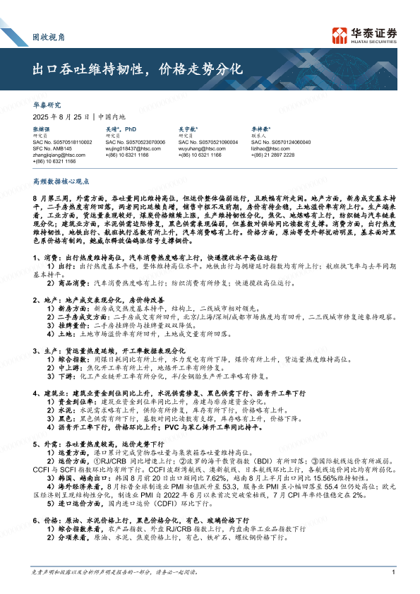 【华泰证券】【202508】固收视角:出口吞吐维持韧性,价格走势分化-14页