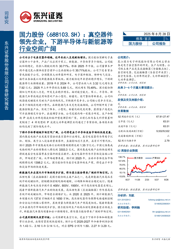 【东兴证券】【202508】国力股份(688103.SH):真空器件领先企业,下游半导体与新能源等行业空间广阔-15页