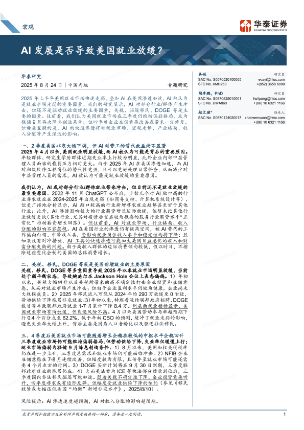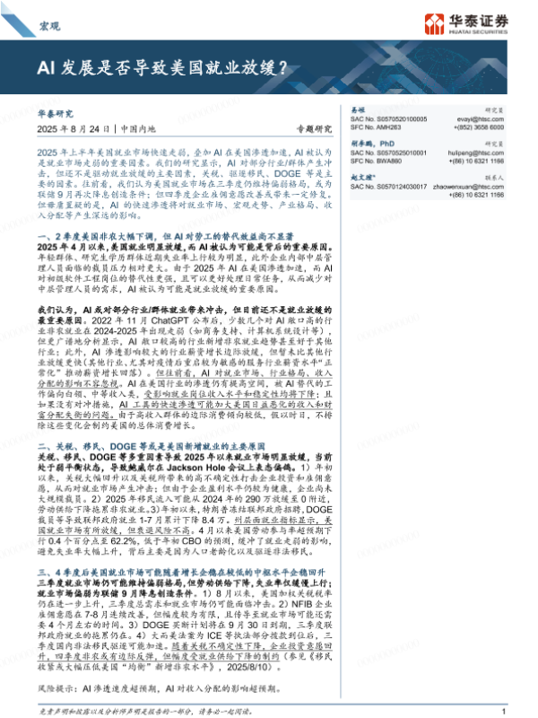 【华泰证券】【202508】AI发展是否导致美国就业放缓?-17页