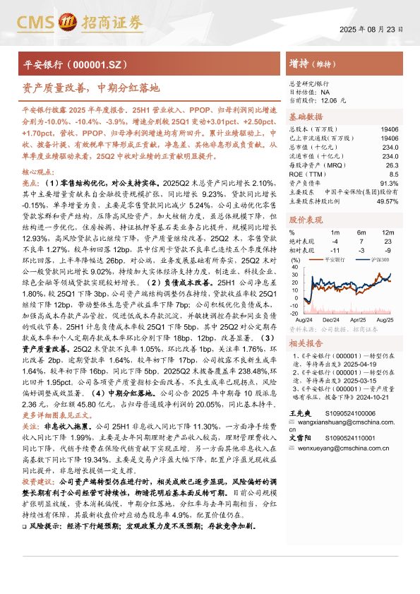 【海通证券】【202508】平安银行(000001)资产质量改善,中期分红落地-19页
