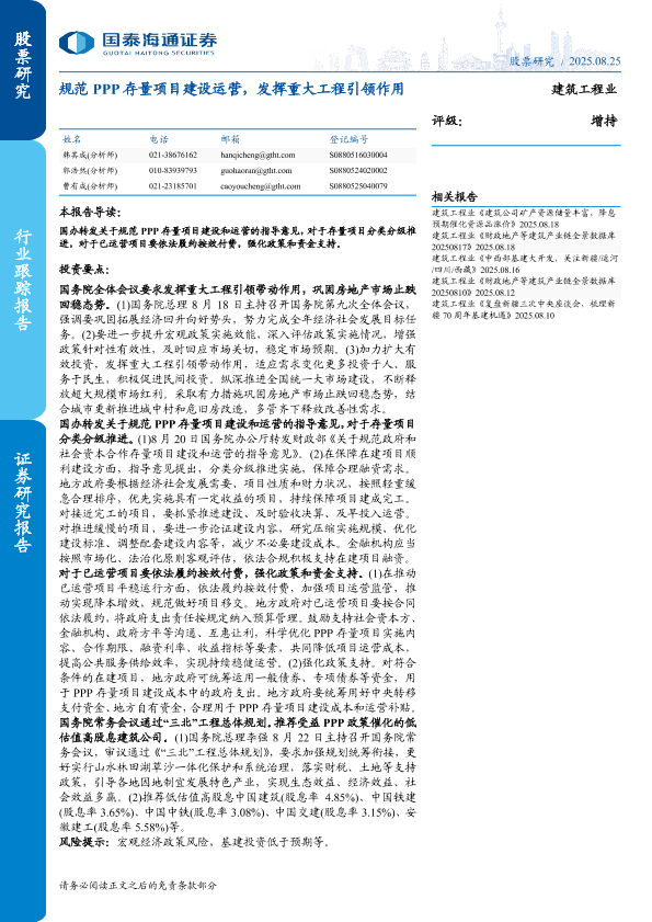 【国泰海通证券】【202508】规范PPP存量项目建设运营,发挥重大工程引领作用-21页