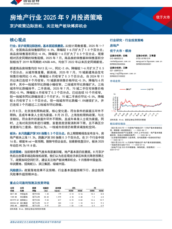 【国信证券】【202508】房地产行业2025年9月投资策略:京沪政策边际放松,关注地产板块博弈机会-11页