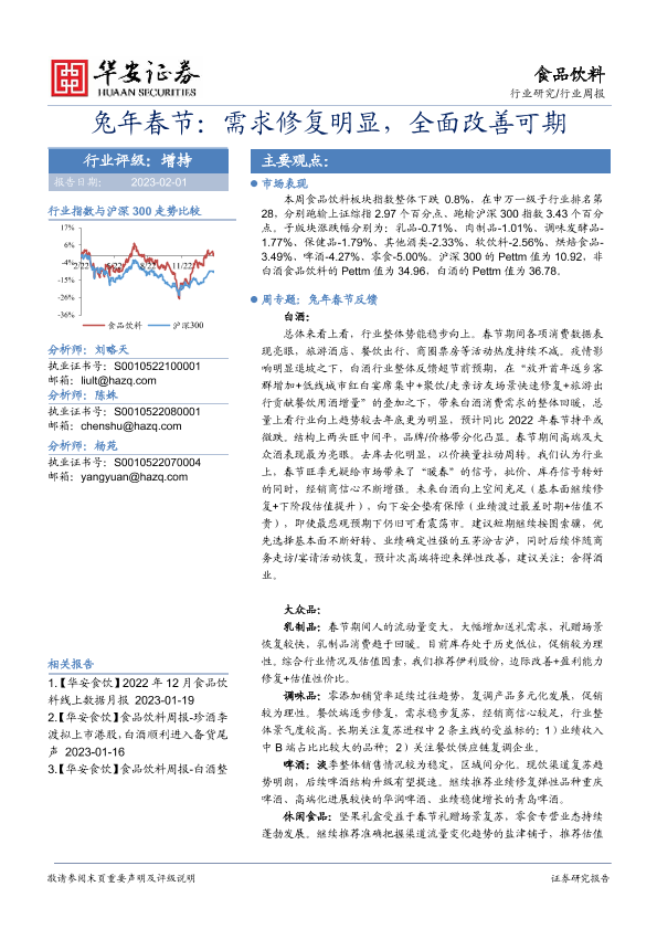 【华安证券】【20230201】食品饮料行业周报:兔年春节,需求修复明显,全面改善可期-18页