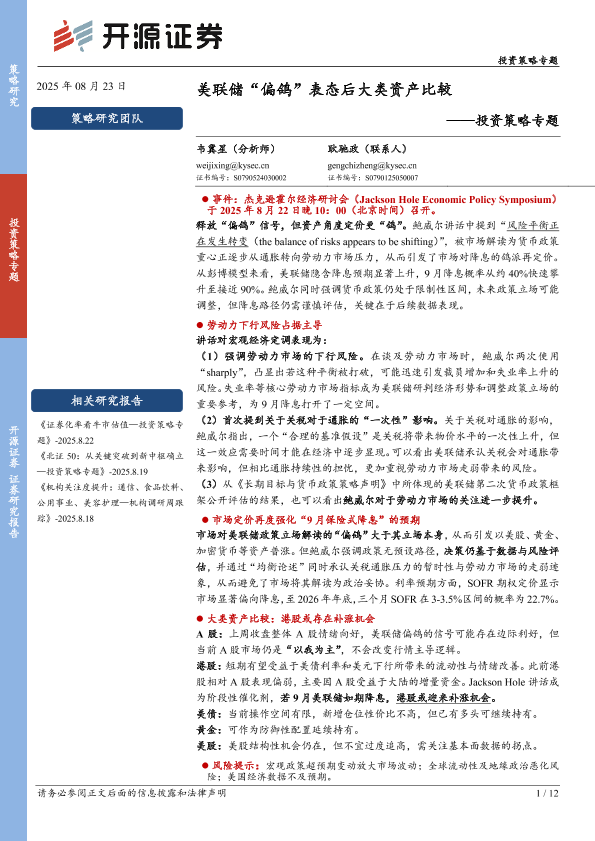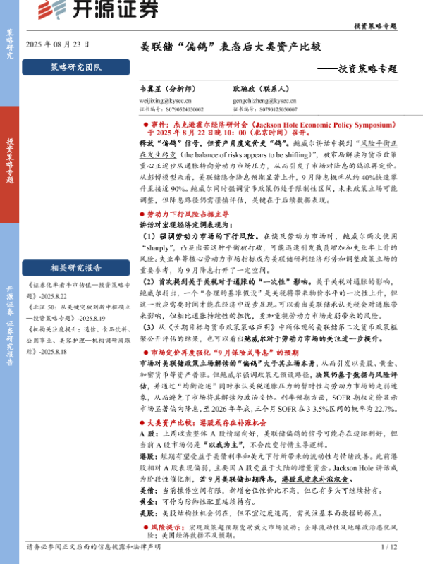 【开源证券】【202508】美联储“偏鸽”表态后大类资产比较-12页