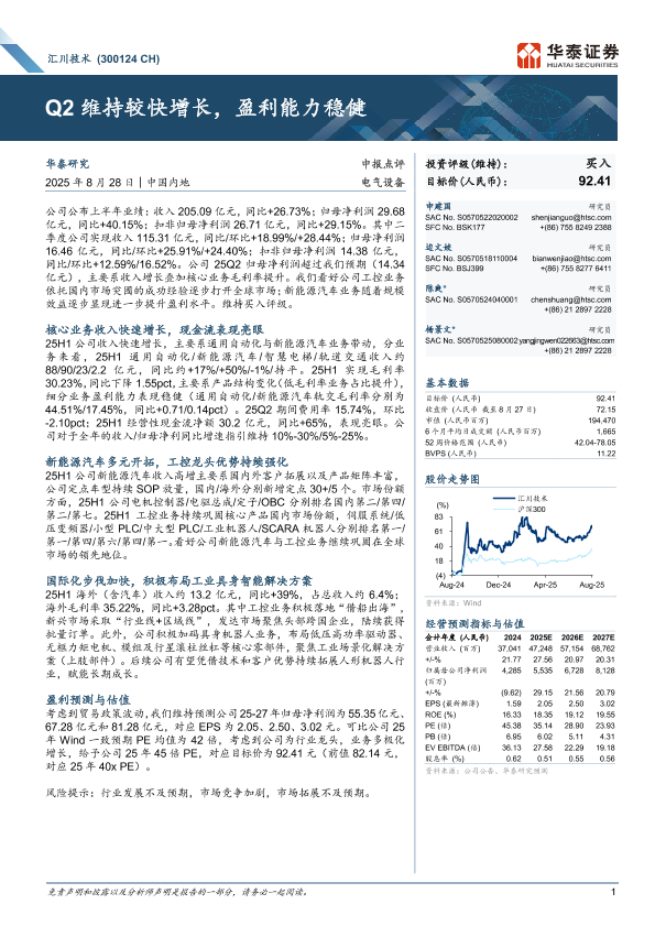 【华泰证券】【202508】汇川技术(300124 CH)Q2维持较快增长,盈利能力稳健-10页