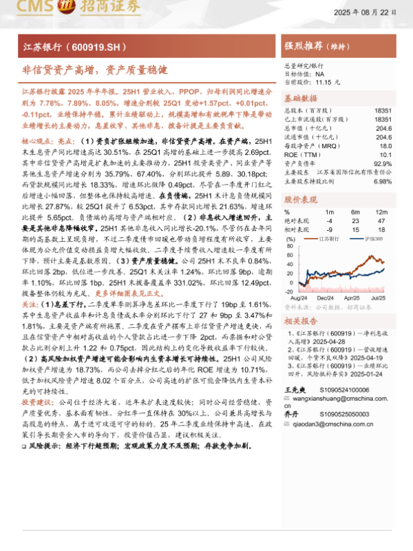 【海通证券】【202508】江苏银行非信贷资产高增,资产质量稳健-18页