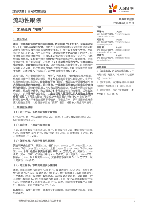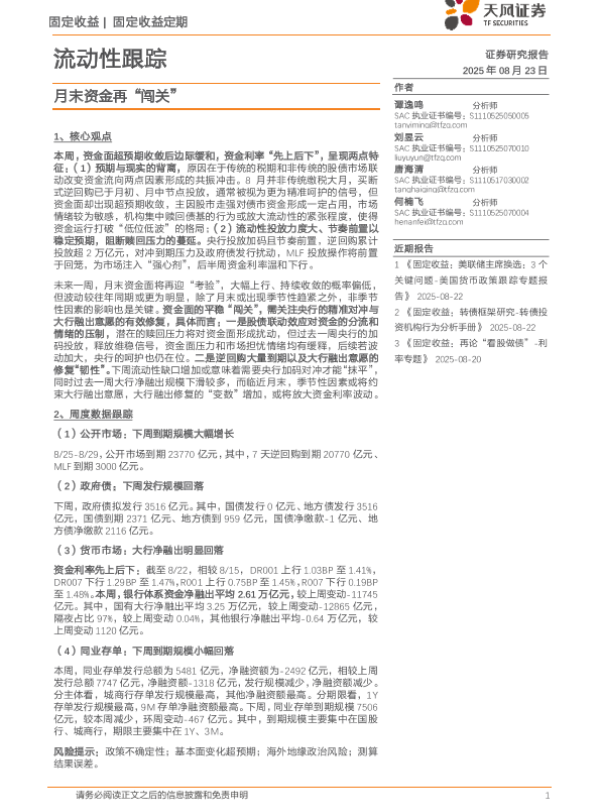【天风证券】【202508】流动性跟踪:月末资金再“闯关”-22页
