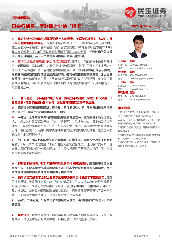 【民生证券】【202508】海外市场追踪:日央行加息,美联储之外的“暗流”-12页