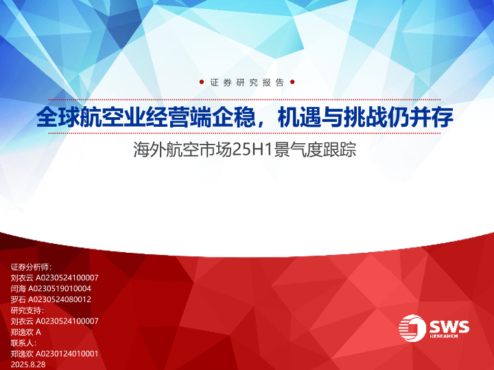 【申万宏源】【202508】海外航空行业市场25H1景气度跟踪:全球航空业经营端企稳,机遇与挑战仍并存-33页