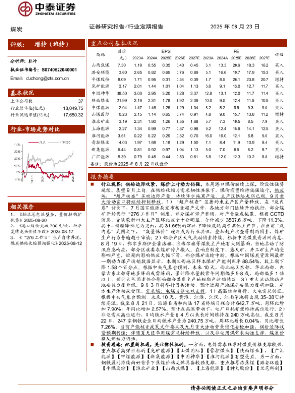 焦煤 动力煤 煤炭 行业研究 投资建议
