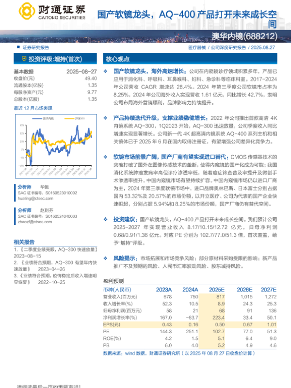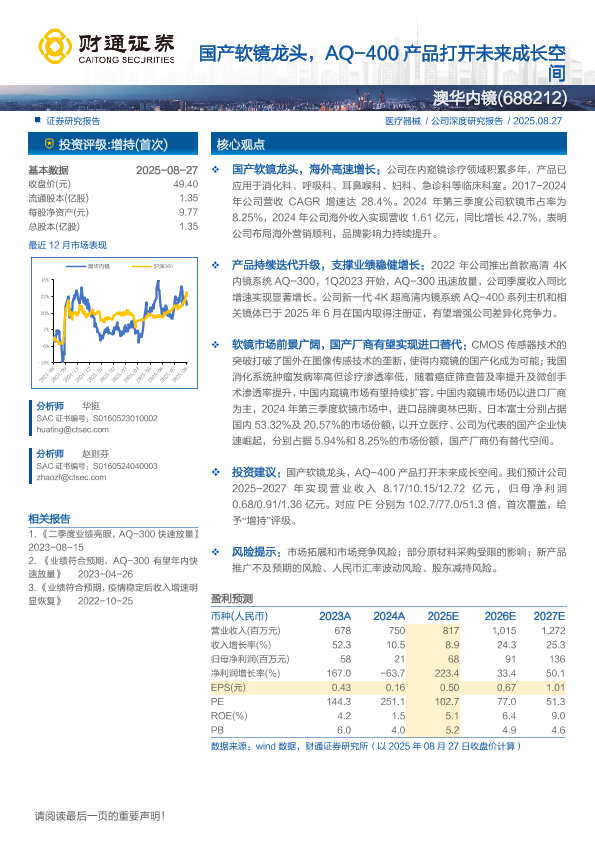 【财通证券】【202508】澳华内镜(688212)国产软镜龙头,AQ_400产品打开未来成长空间-24页