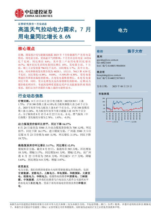 【中信建投证券】【202508】高温天气拉动电力需求,7月用电量同比增长8.6%-20页