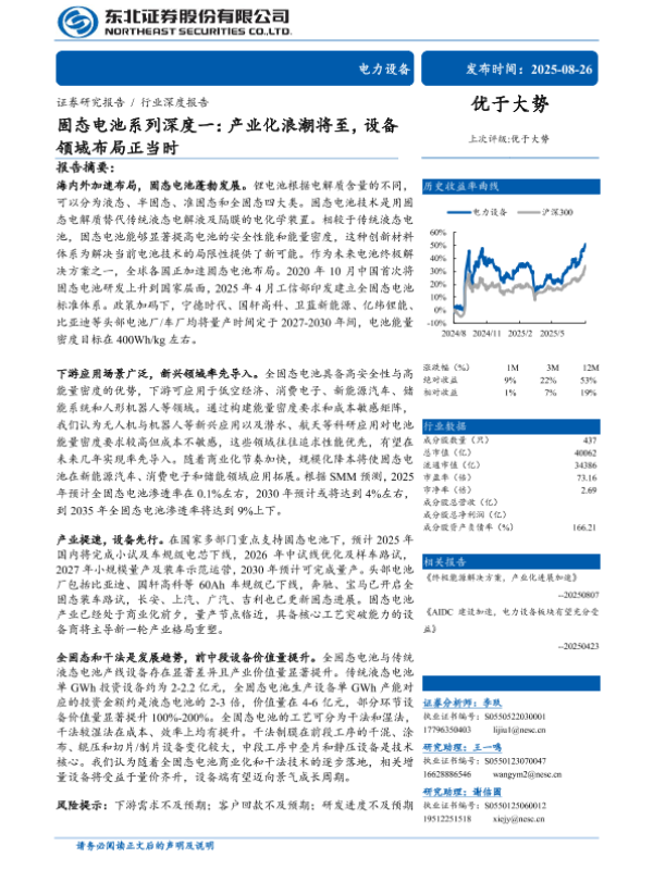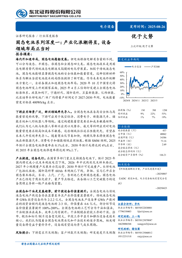 【东北证券】【202508】电力设备行业固态电池系列深度一:产业化浪潮将至,设备领域布局正当时-29页