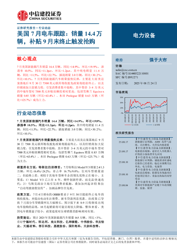 【中信建投证券】【202508】美国7月电车跟踪:销量14.4万辆,补贴9月末终止触发抢购-13页
