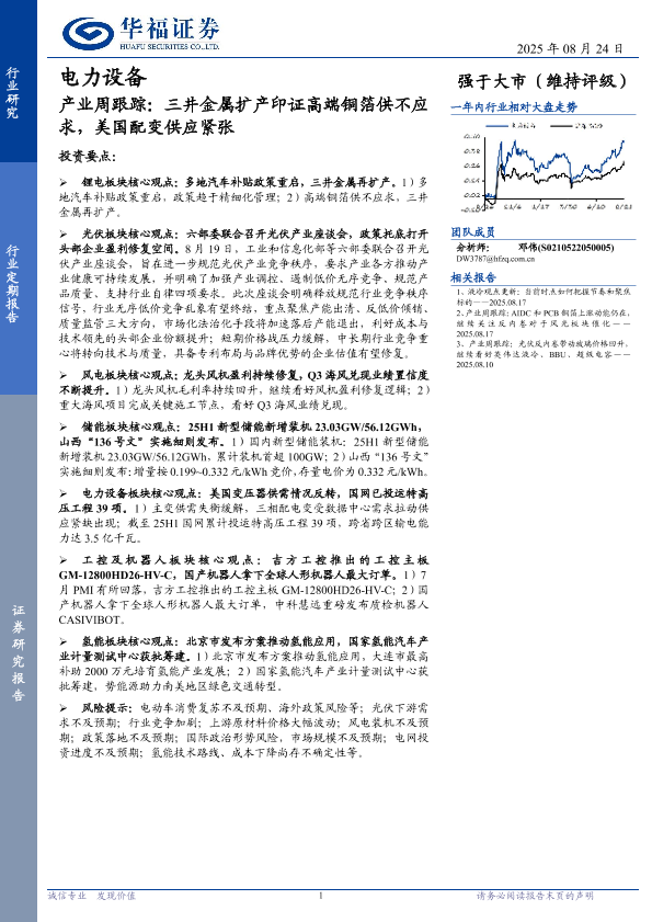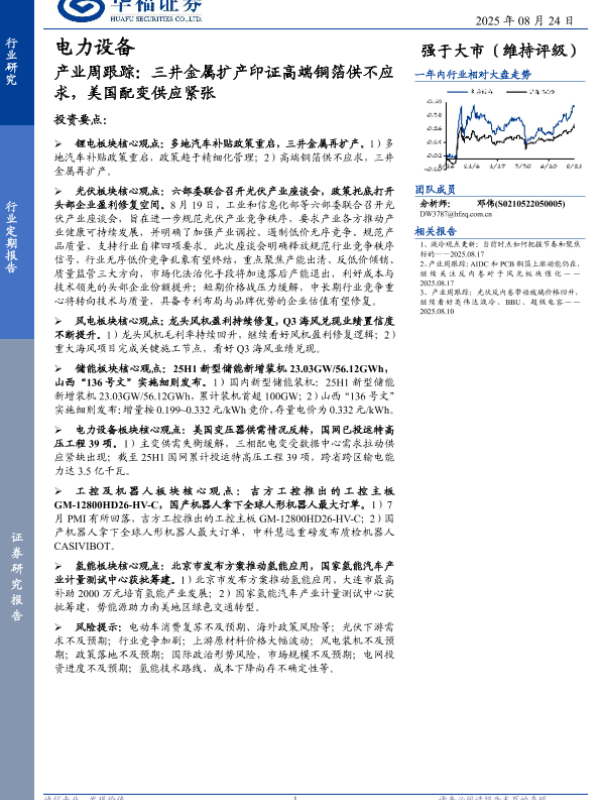 【华福证券】【202508】电力设备产业周跟踪:三井金属扩产印证高端铜箔供不应求,美国配变供应紧张-19页