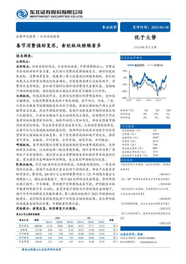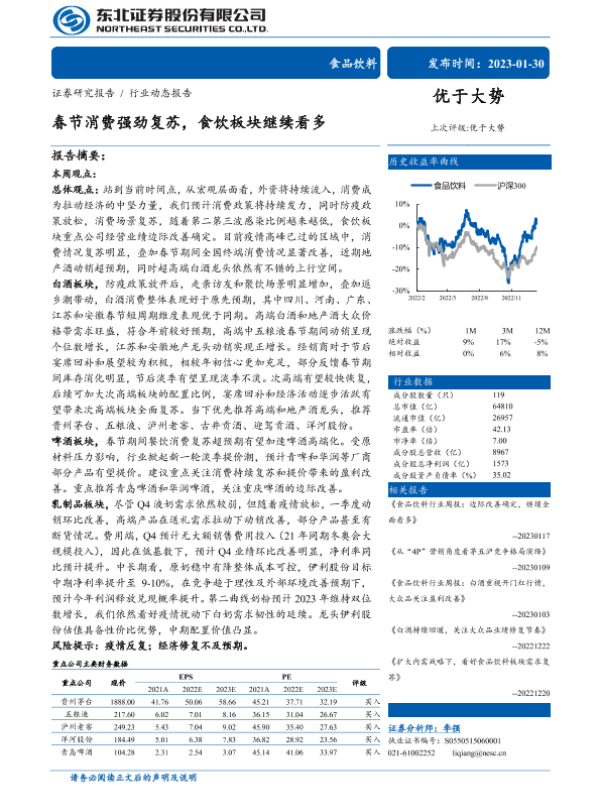 【东北证券】【20230130】食品饮料行业:春节消费强劲复苏,食饮板块继续看多-18页