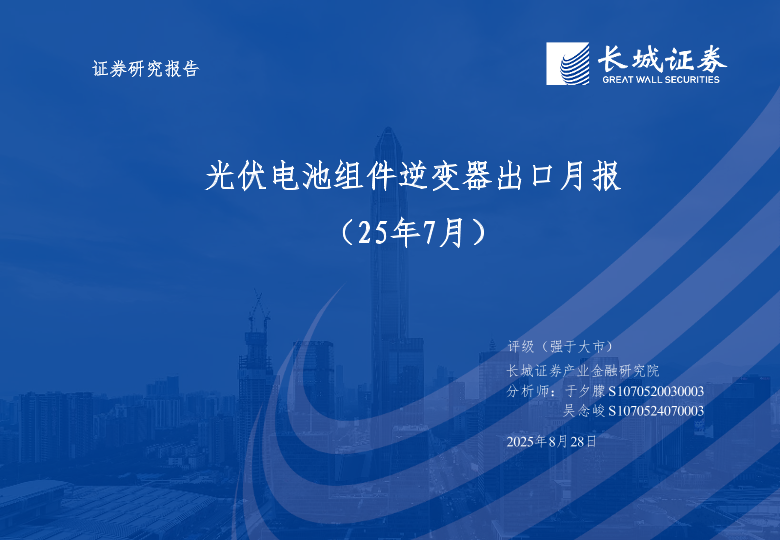 【长城证券】【202508】电力设备及新能源行业:光伏电池组件逆变器出口月报(25年7月)-17页
