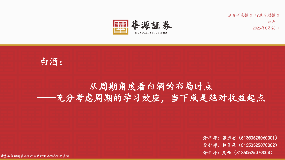 【华源证券】【202508】白酒:从周期角度看白酒的布局时点 ——充分考虑周期的学习效应,当下或是绝对收益起点-25页
