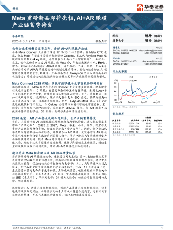 【华泰证券】【202508】Meta重磅新品即将亮相,AI+AR眼镜产业链蓄势待发-10页