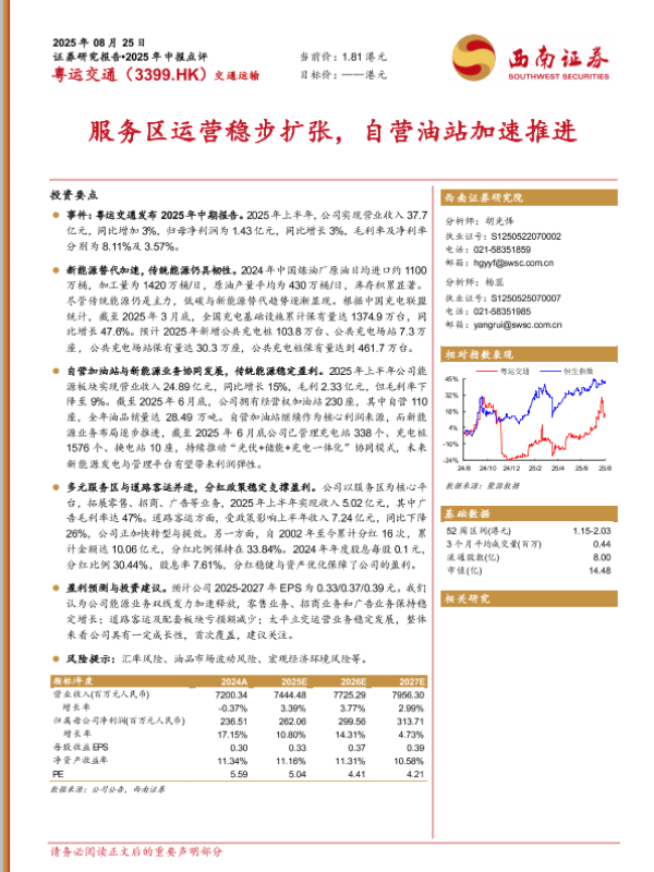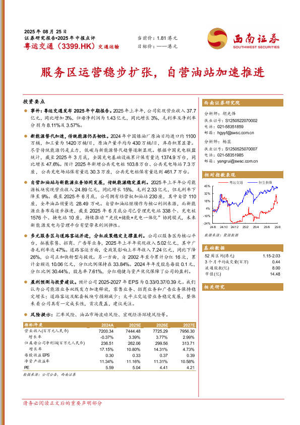 【西南证券】【202508】粤运交通:服务区运营稳步扩张,自营油站加速推进-16页