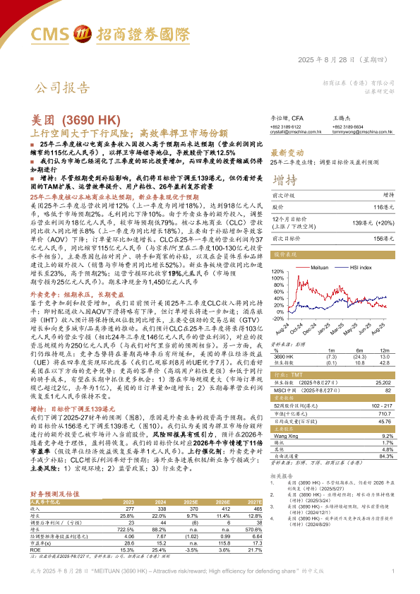 【招商证券国际】【202508】MEITUAN ( 3690 HK ) – Attractive risk/reward; High efficiency for defending share-10页