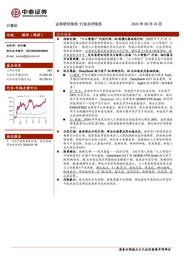 【中泰证券】【202508】计算机行业点评报告:DeepSeek助力国产AI软硬协同,政策+产业共振将至-14页
