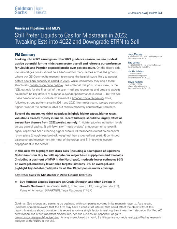 【Goldman Sachs】【20230131】s for Midstream in 2023; Tweaking Ests into 4Q22 and Downgrade ETRN to...-51页