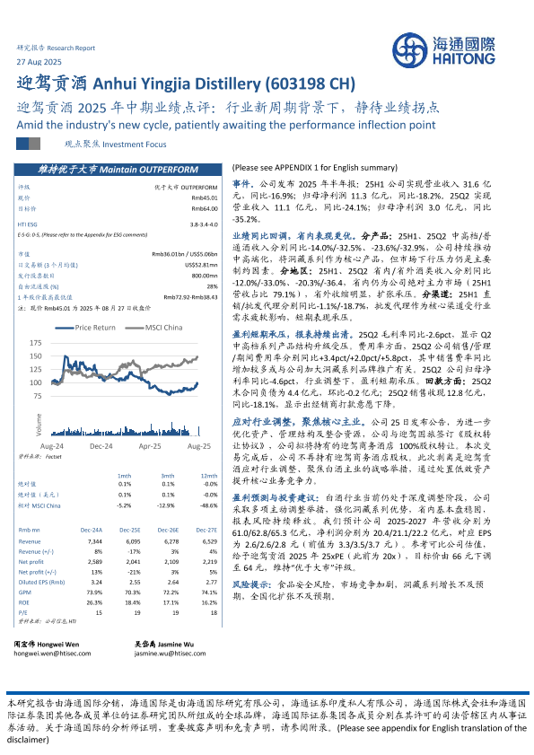 【海通国际】【202508】迎驾贡酒(603198)2025年中期业绩点评:行业新周期背景下,静待业绩拐点-12页