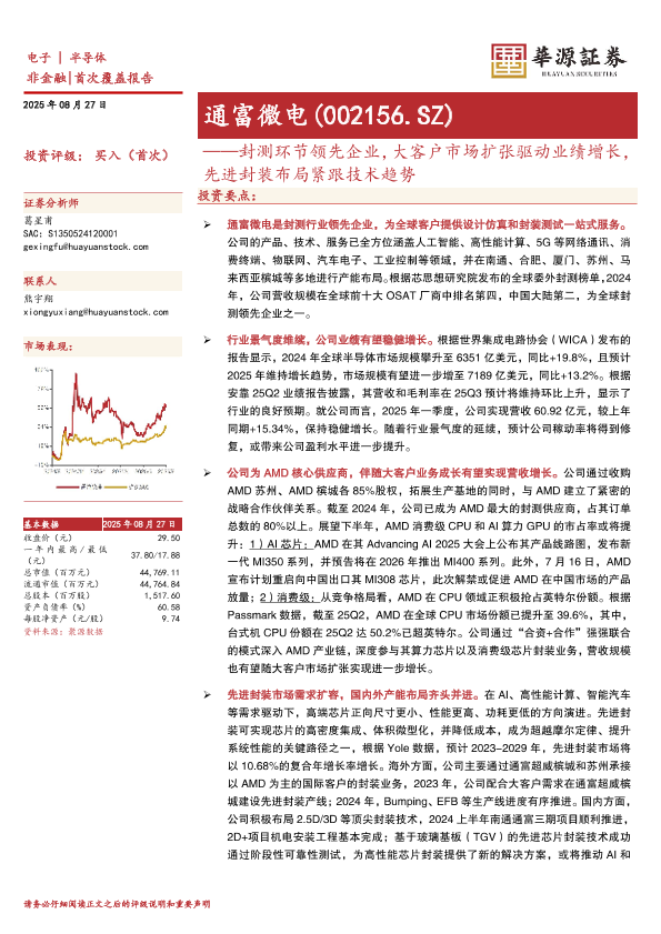 【华源证券】【202508】通富微电:加大先进封装布局,与大客户共发展-26页