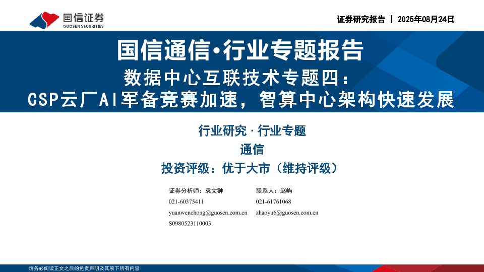 【国信证券】【202508】通信行业数据中心互联技术专题四:CSP云厂AI军备竞赛加速,智算中心架构快速发展-43页