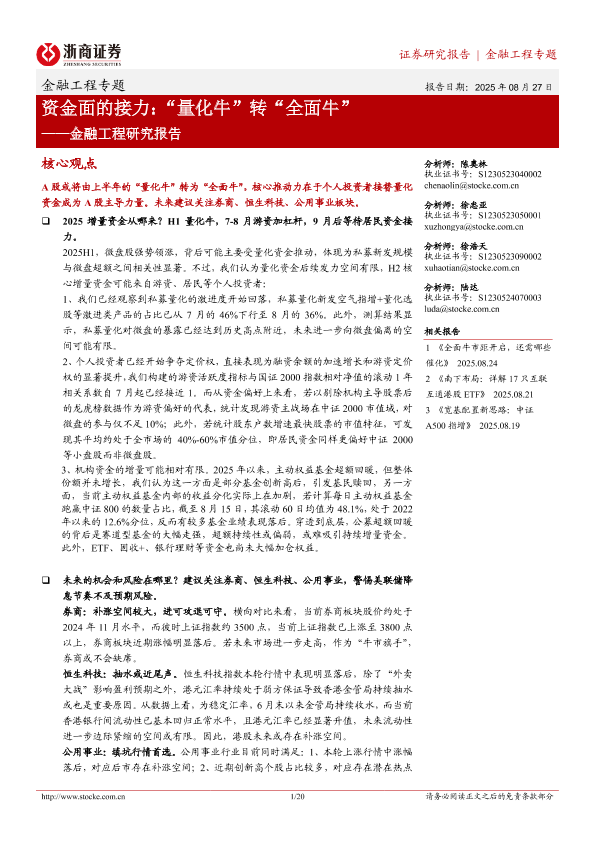 【浙商证券】【202508】资金面的接力:“量化牛”转“全面牛”-20页