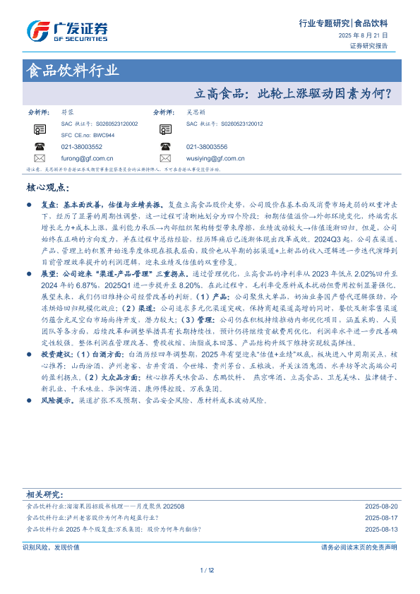 【广发证券】【202508】食品饮料行业:立高食品,此轮上涨驱动因素为何?-12页