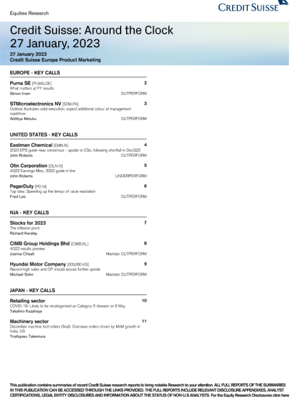 【Credit Suisse】【20230127】Credit Suisse Around the Clock-11页