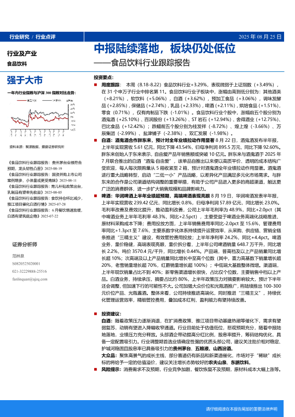 【爱建证券】【202508】食品饮料行业跟踪报告:中报陆续落地,板块仍处低位-10页