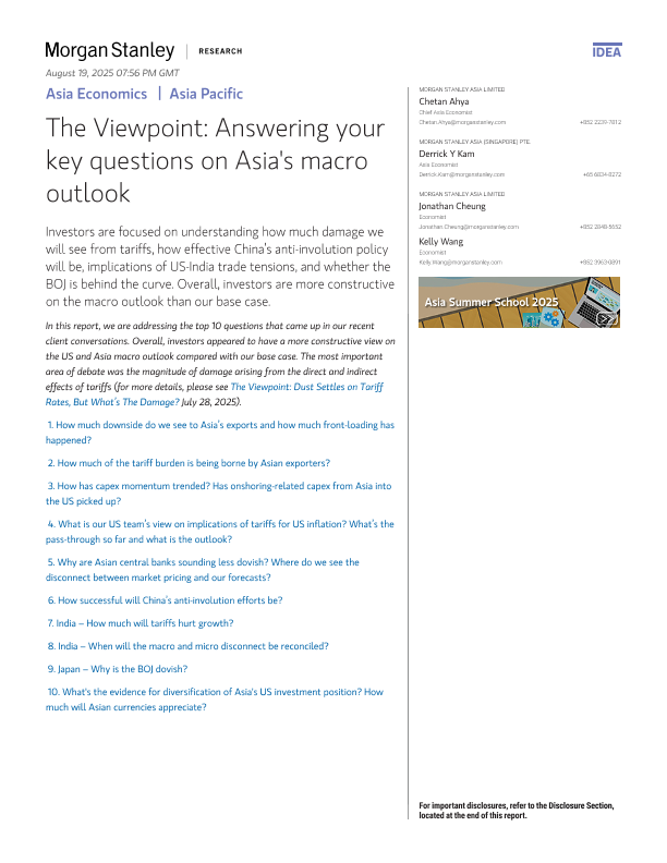 【MORGAN STANLEY ASIA LIMITED&MORGAN STANLEY ASIA (SINGAPORE) PTE.】【202507】The Viewpoint Answering your key questions on Asia's macro outlook-20页