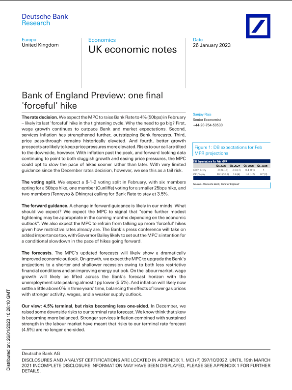 【Deutsche Bank Research】【20230126】Bank of England Preview one final 'forceful' hike-15页