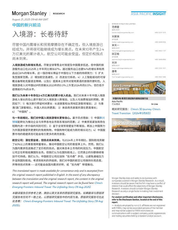 【Morgan Stanley】【202508】中国的新兴前沿 入境游:长卷待舒-15页