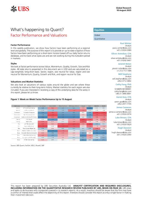 【UBS】【202408】What's happening to Quant? Factor Performance and Valuations-24页