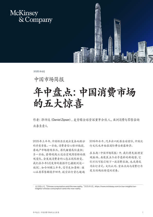 【麦肯锡公司】【202508】年中盘点:中国消费市场的五大惊喜-9页