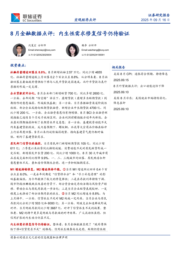 【联储证券】【202509】8月金融数据点评:内生性需求修复信号仍待验证-11页
