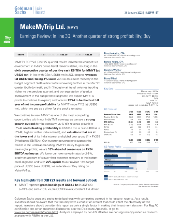 【Goldman Sachs】【20230131】Earnings Review In line 3Q Another quarter of strong profitability; Buy-11页