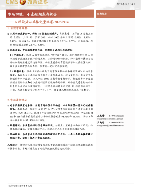 【海通证券】【202509】A股趋势与风格定量观察:市场回暖,小盘短期或存机会-10页