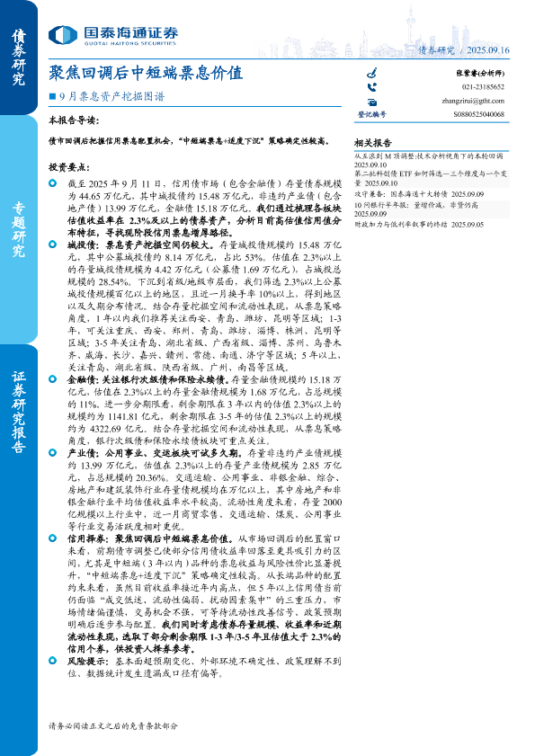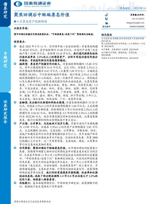 【国泰海通证券】【202509】9月票息资产挖掘图谱:聚焦回调后中短端票息价值-13页