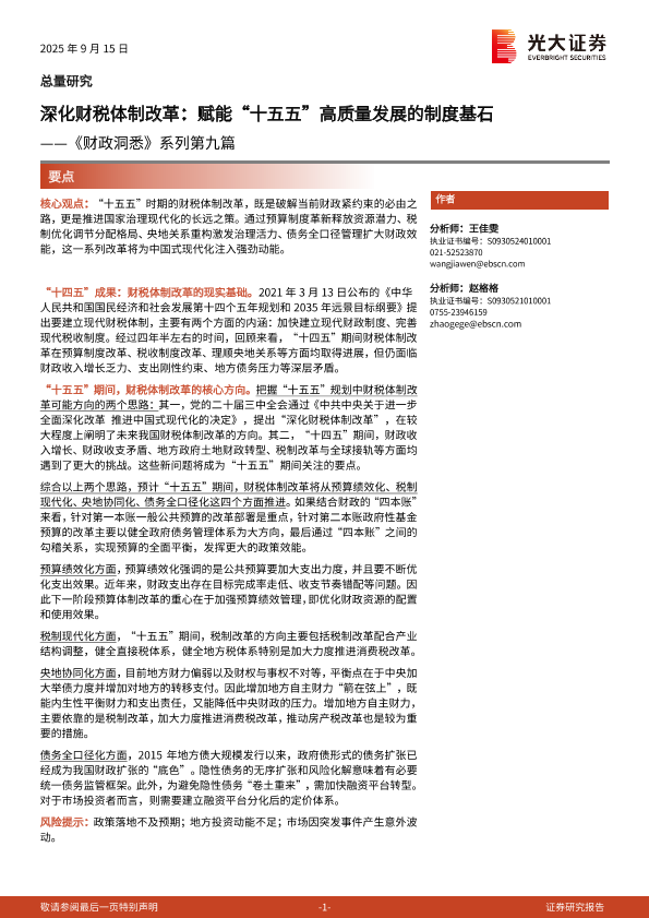 【光大证券】【202509】深化财税体制改革:赋能“十五五”高质量发展的制度基石-12页
